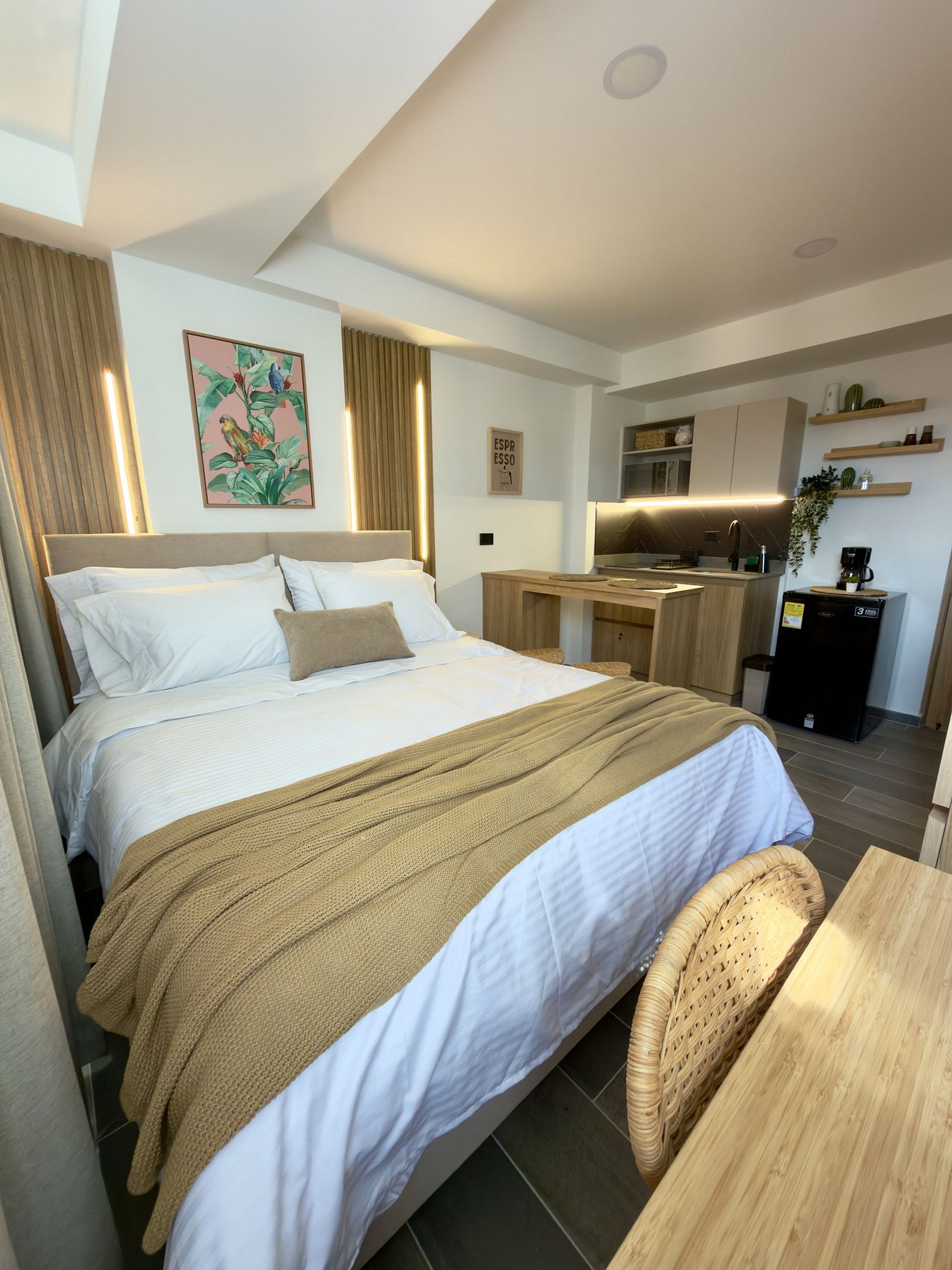 Nuestro loft tiene capacidad para dos personas e incluye una habitación, un baño privado y una cama cómoda. Está totalmente equipado y diseñado para ofrecer una estadía práctica, acogedora y sin complicaciones, ideal para viajes de trabajo, estudio o turismo.